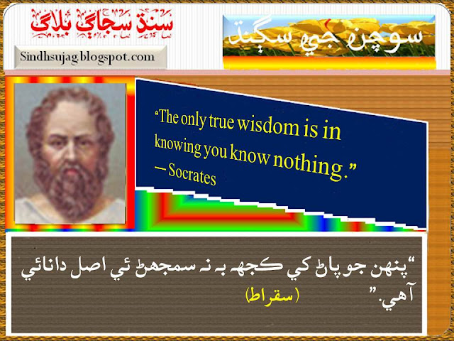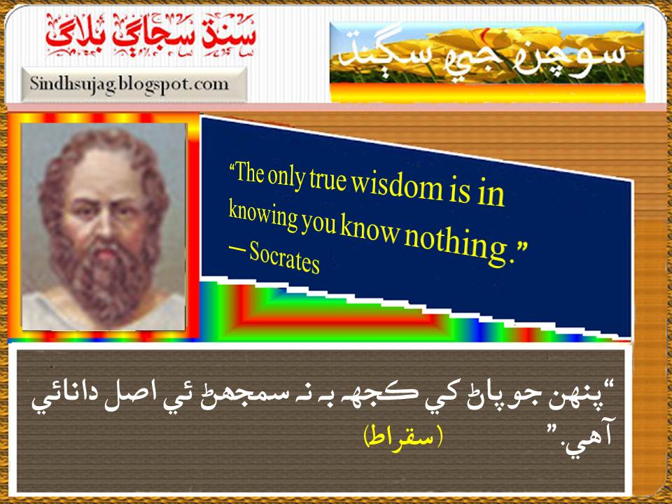 “The only true wisdom is in knowing you know nothing.” Socrates “پنهن جو پاڻ کي ڪجهه به نه سمجھڻ ئي اصل دانائي آهي.” (سقراط)